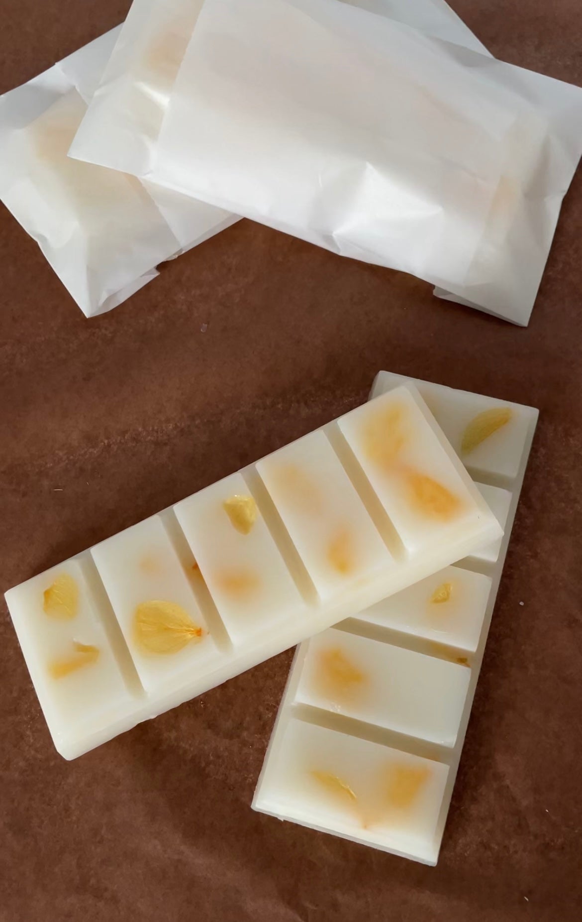 Ingrédients : cire naturelle et végétale de soja/coco (sans essai sur les animaux), parfum de Grasse (sans paraben ni phtalates).
